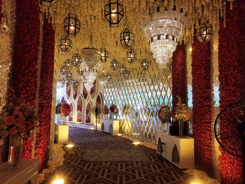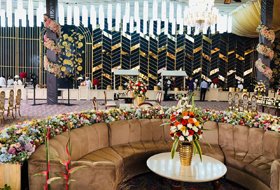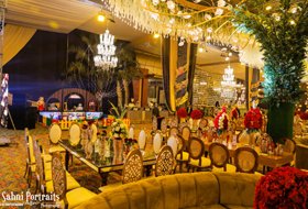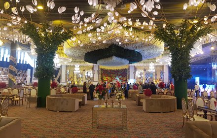 To get out of this world experience of a Maharaja (King), the place begins to stir your spirits right from the main entrance highlighting Beautiful Fountains, Luxurious Banquet Hall, Green Party Lawn & Spectacular Marshal Lights right at the eye catching level.